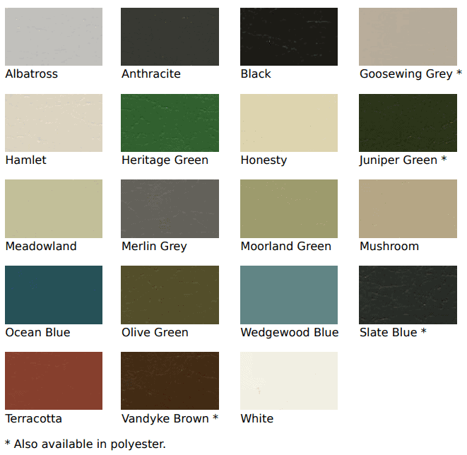 Plastisol Leathergrain is 200micron thick colour coating applied by the steel producers under strict quality control procedures.